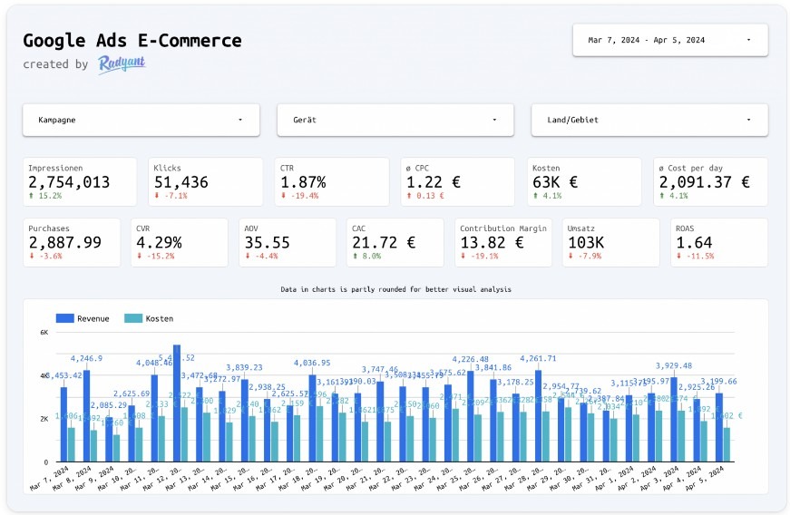 Ecommerce reporting centers on revenue, ROAS, and the full path from click to purchase. The challenge is that ROAS at the account level can mask serious problems at the campaign or product level — which is exactly what a well-structured Google Ads ecommerce dashboard template is designed to expose.