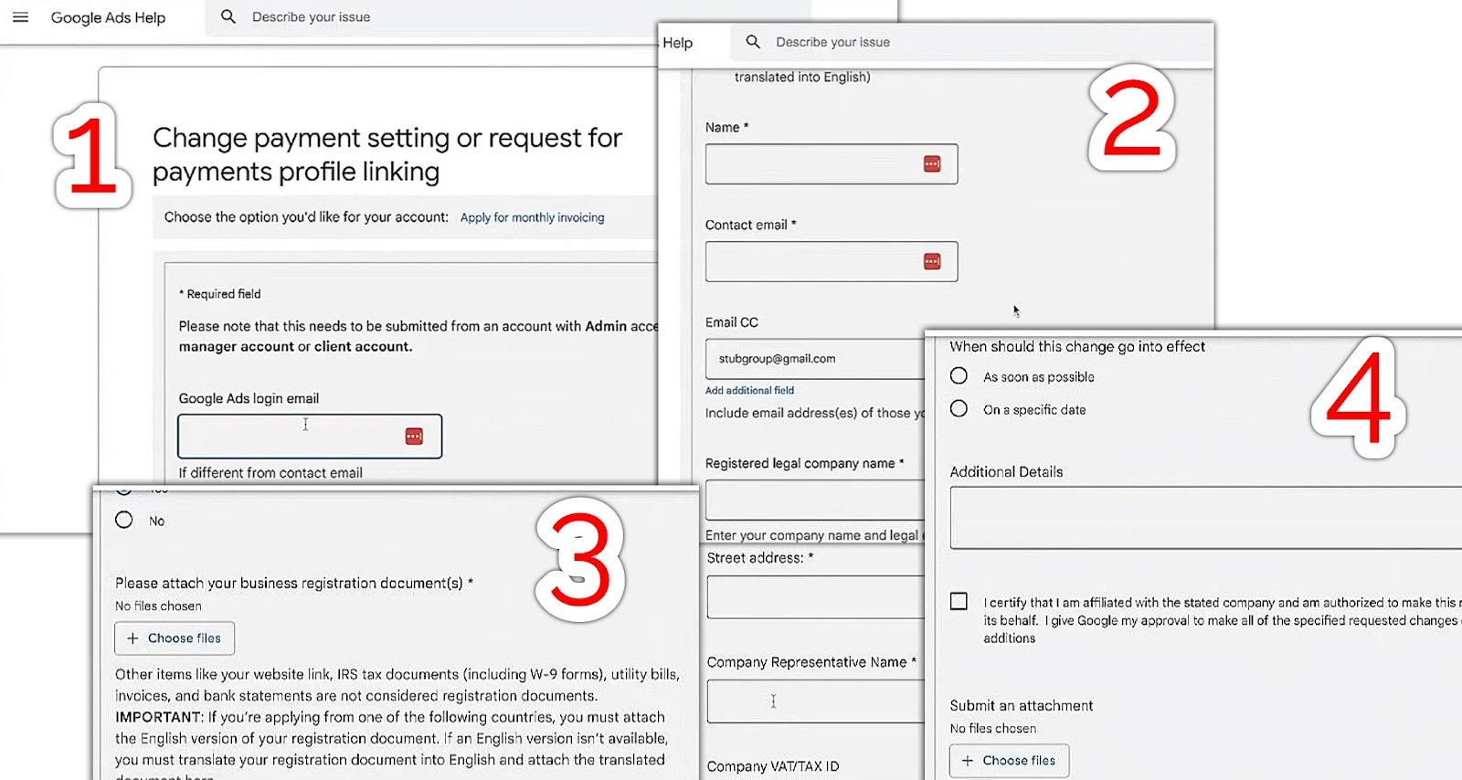 Provide an authorized representative letter if someone else manages billing. A marketing agency managing client accounts must submit both agency documents and client authorization letters to clear billing suspensions.
