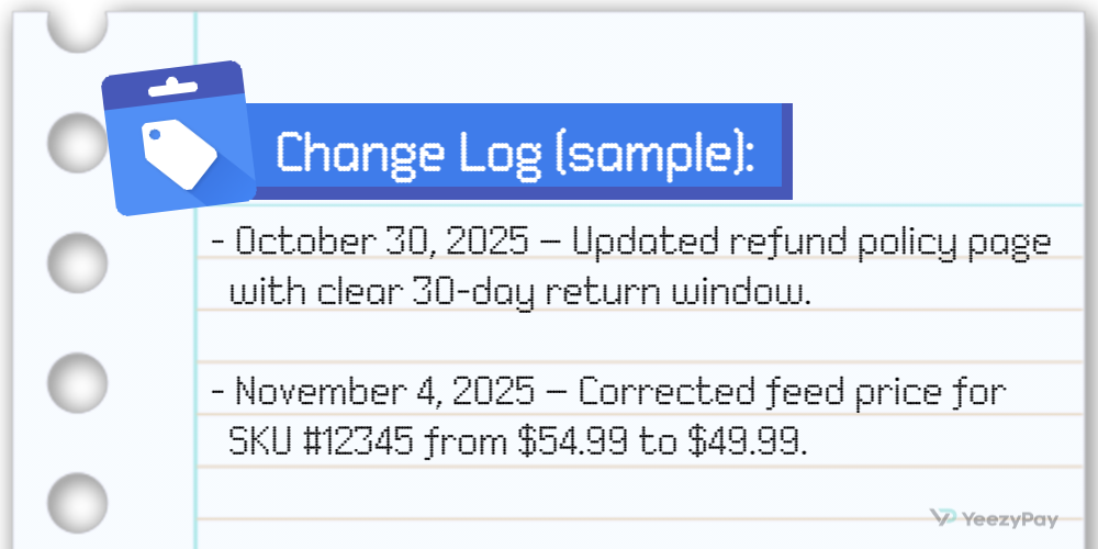 Step 2 - Record updates made to ad copy, landing pages, or billing details.