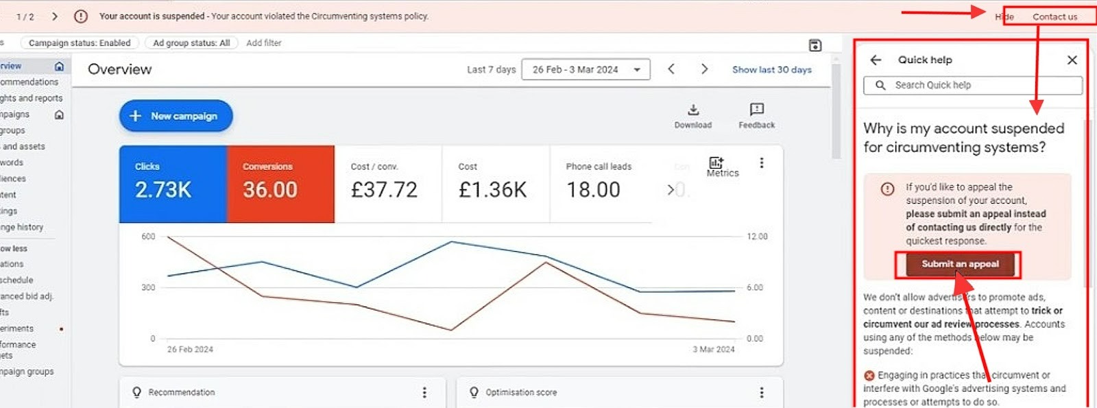 Try to imagine an e-commerce store that sells supplements. One of their ads gets disapproved for misrepresentation because the landing page claims “guaranteed weight loss in 7 days” (with no proof), the advertiser could ignore this warning and keep running similar ads. After some time, it may lead to a Google Ads account suspended status where all campaigns are blocked until the site’s claims are corrected and verified.