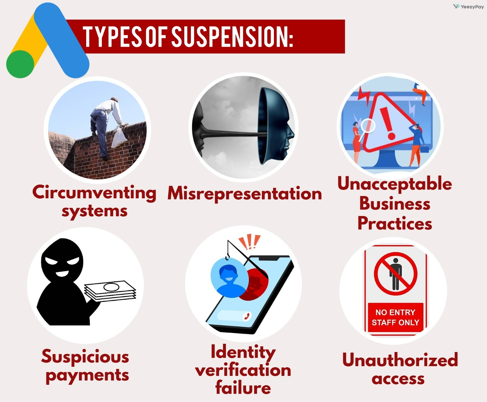 The simple answer to this is that Google only suspends an account when they detect any policy violation or risk signal on either the landing page or the account itself. There are different categories of suspension based on what triggered them.