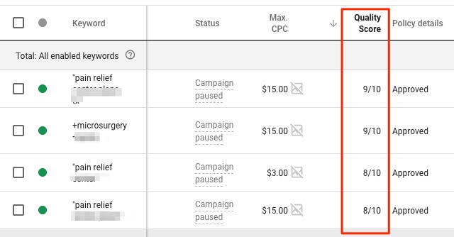 Carefully check the status column at the ad and keyword levels — this is often where hidden disapproval warnings are located.