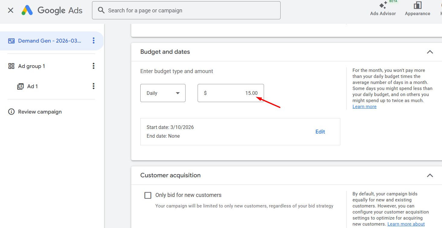 Many affiliates intentionally set a minimum daily spend to test a campaign angle for pennies. However, practice proves this approach to be flawed, as an excessively low budget simply doesn’t allow the campaign to enter the auction. In one of our previous posts, we discussed how a micro-spend strategy during account warm-up can land you in a sandbox, where Google intentionally limits impressions or, if they do occur, inflates the price.