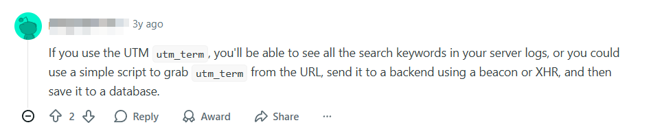Another interesting hack was provided by a Reddit user: if you use the utm_term tag, you can create a simple script to capture keywords and save them to a database.