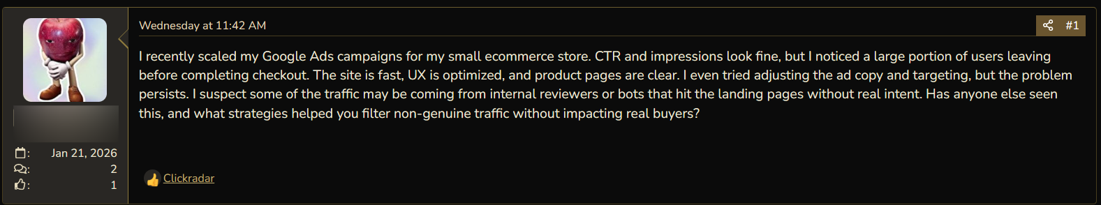 Even as a hypothetical, this scenario can break you out in a cold sweat. Meanwhile, for many media buyers, this is a very real problem. For instance, one affiliate on BHW shared: "The site is fast, the UX is optimized, and product pages are clear, but users still leave."
