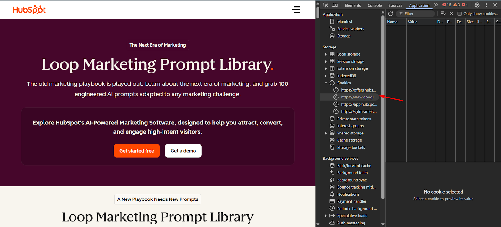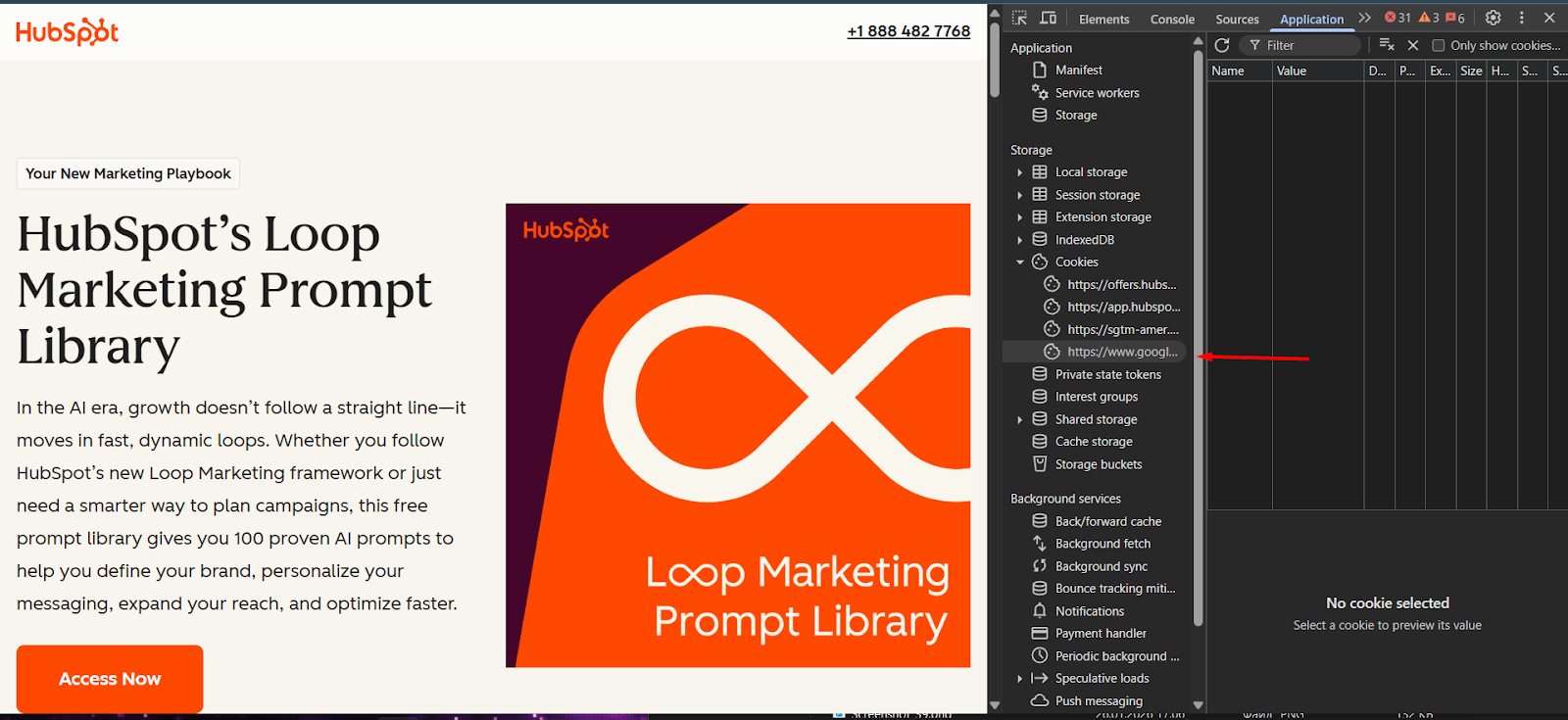 For example, on one of HubSpot's landing pages, you can see a Google Tag Manager tag—here it plays the role of the gclid. If the user makes a purchase and reaches the "Thank You!" page, the tag remains: this means the conversion was tracked.