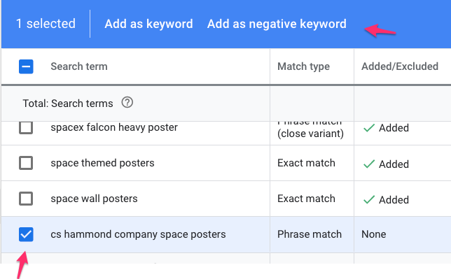 How do I find good negative keywords from my search terms report?
