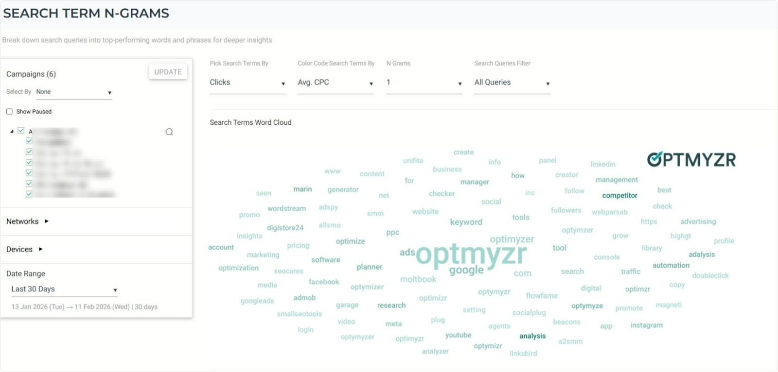 PPC expert Bob Meijer uses AI-assisted n-gram matching to cross-check search term conversion rates against existing exclusion lists — specifically to identify negatives that were accidentally blocking valuable traffic. Search Term N-Grams tool visualizes search term patterns as a word cloud, letting practitioners spot high-cost, zero-conversion query clusters without manually sorting through hundreds of rows.