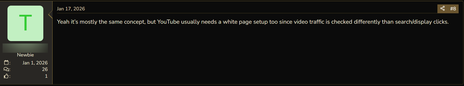 For this reason, cloaking campaigns on YouTube are harder than with other placements: generated white pages are no longer sufficient, and the risk of receiving a rejection or block increases.