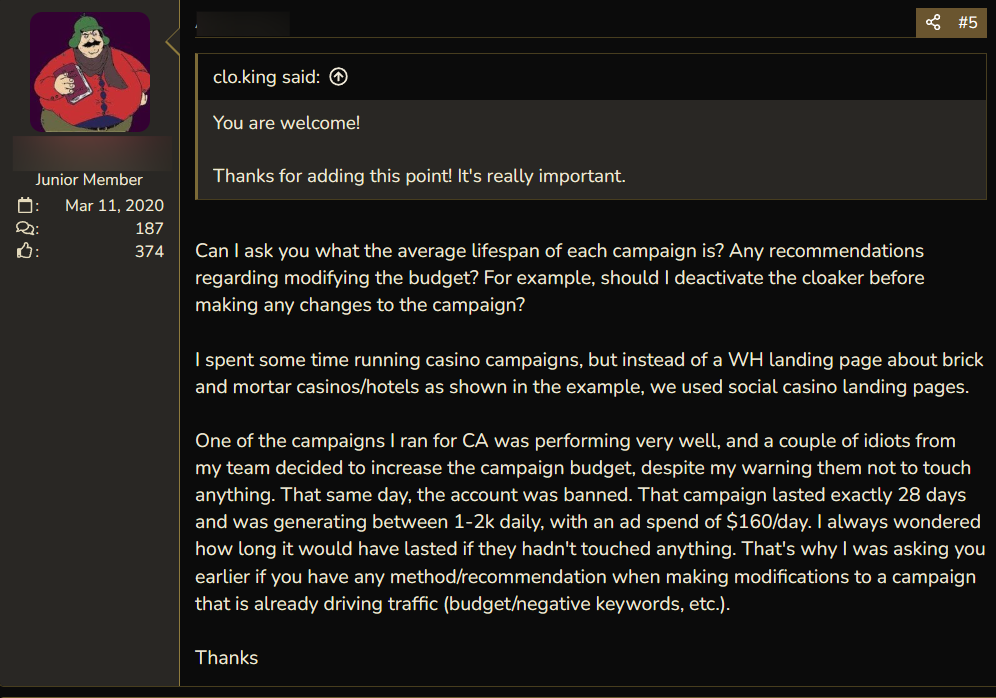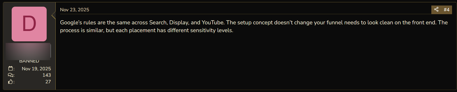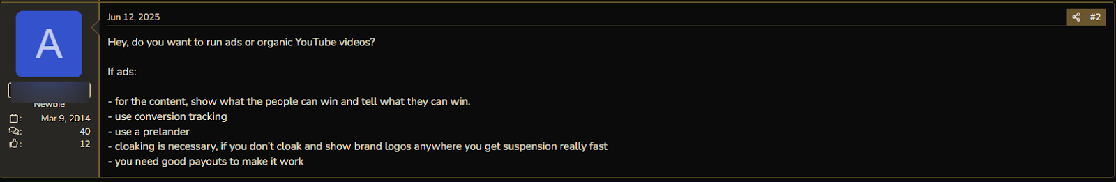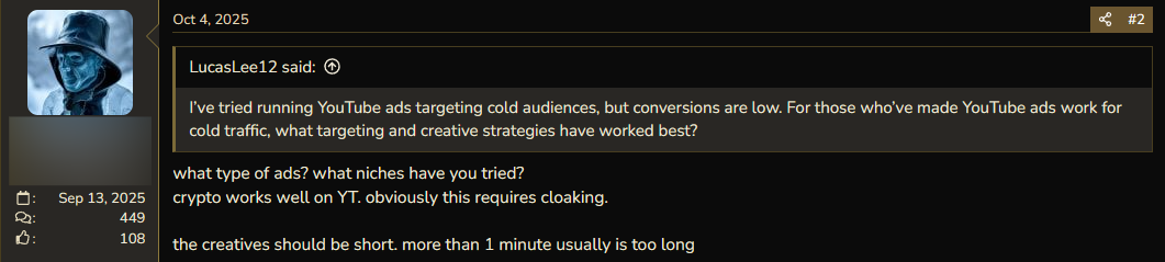 On forums, you can find dozens of messages from affiliates with questions about YouTube cloaking. They are curious, ask for help, and don't understand why accounts sometimes get banned in batches. On BHW, one user shared how they tried several different cloakings, but the ads were still rejected.