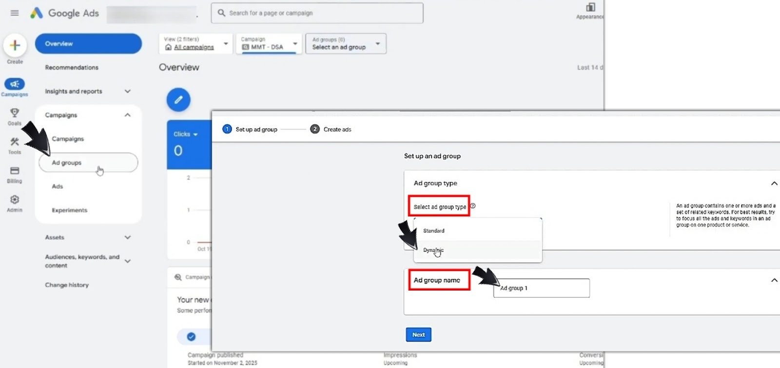 Step 4: Building Ad Groups and Switching to Dynamic Ad Group Type