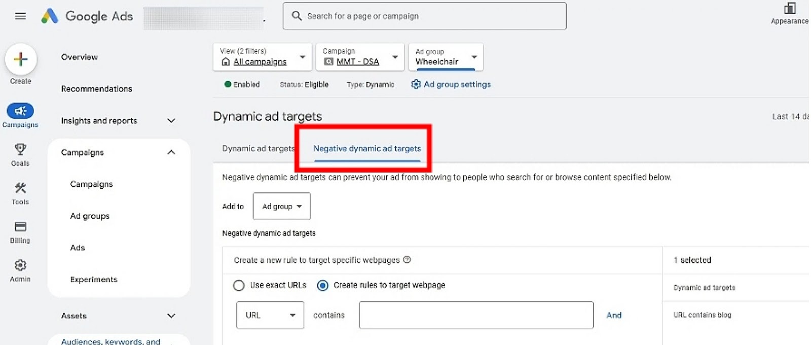 Crawl Access: Since the efficiency of DSA is based on what Google can pull from your site, it is important to ensure that robots.txt does not block product or category paths and your XML sitemap is current so Google can index pages used for targeting.