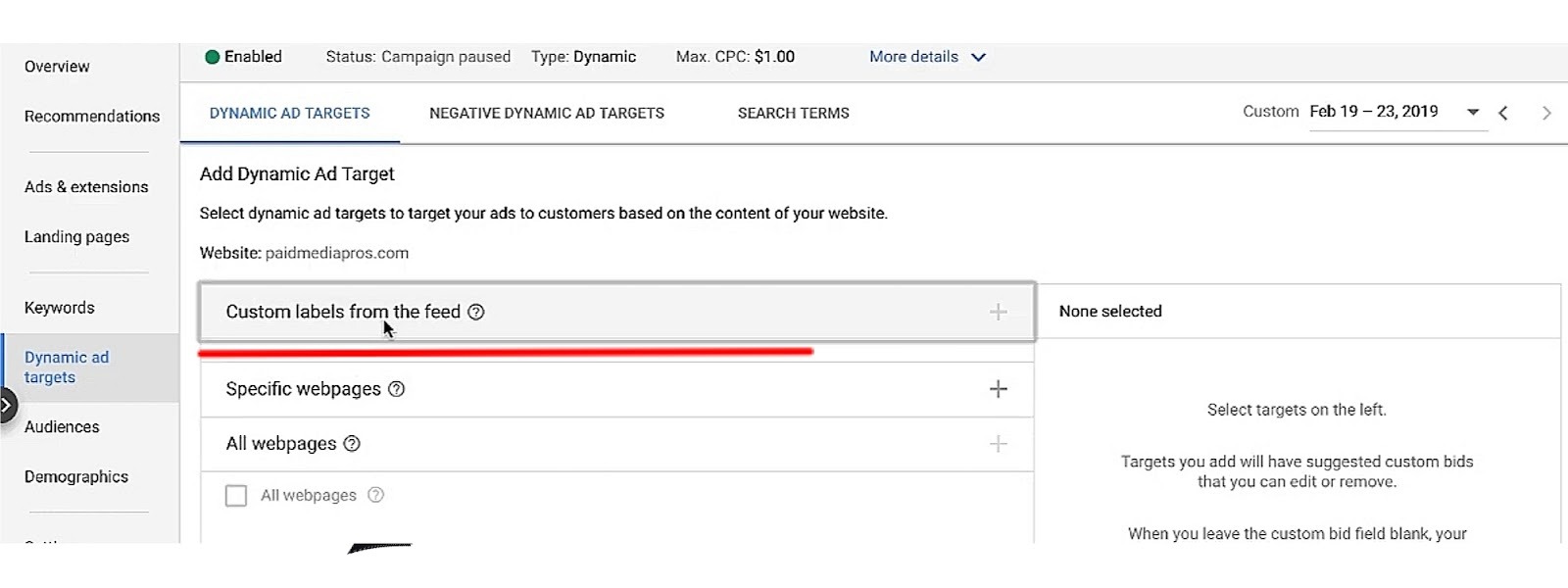 As good as DSAs are, there are a few itches to their use. For instance, experienced advertisers avoid the broad “All categories” dynamic target because it’s too indiscriminate; they rather use specified categories from page feeds or just select specific pages. Also, in order not to waste budget on poor matches and not attract account suspension due to unpaid balance, you can pause campaigns to inspect targets and exclude irrelevant pages (homepage, blog, contact).