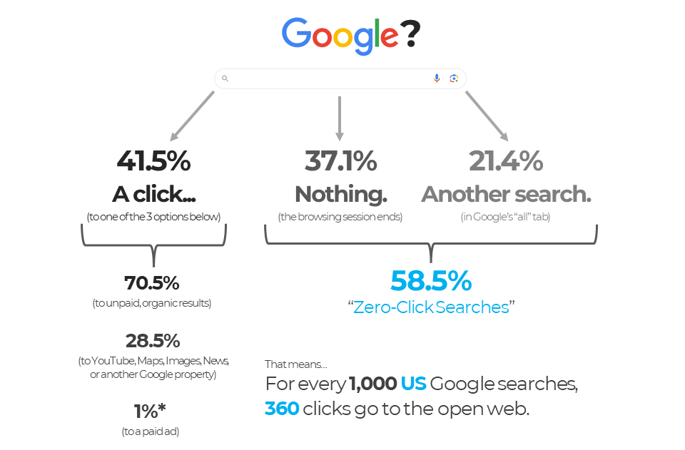 The most useful thing you can do for a stakeholder is show all three together. Rand Fishkin's zero-click search study found that out of every 1,000 Google searches in the US, only 360 clicks reach any property outside Google's own ecosystem. A baseline built on raw impression data — without accounting for zero-click SERPs and AI Overviews — will systematically overstate projected traffic. That's the kind of assumption that makes a forecast look great in January and embarrassing by Q3.