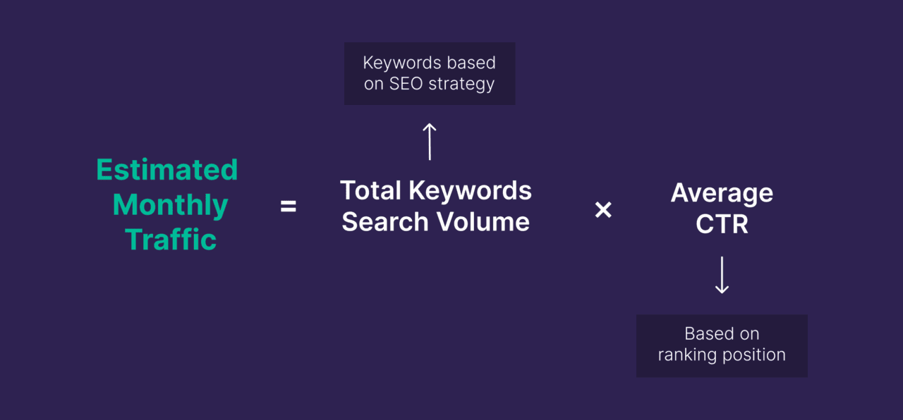 This is the most common method for SEO traffic forecasting at the campaign level. For each target keyword: take the monthly search volume, apply a CTR estimate based on projected rank, multiply by your page's conversion rate, and sum across the keyword set.