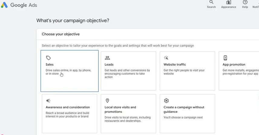 Select your Objective: Choose "Sales," "Leads," or "Brand Awareness." This tells Google’s AI what success looks like so it can optimize your bidding.
