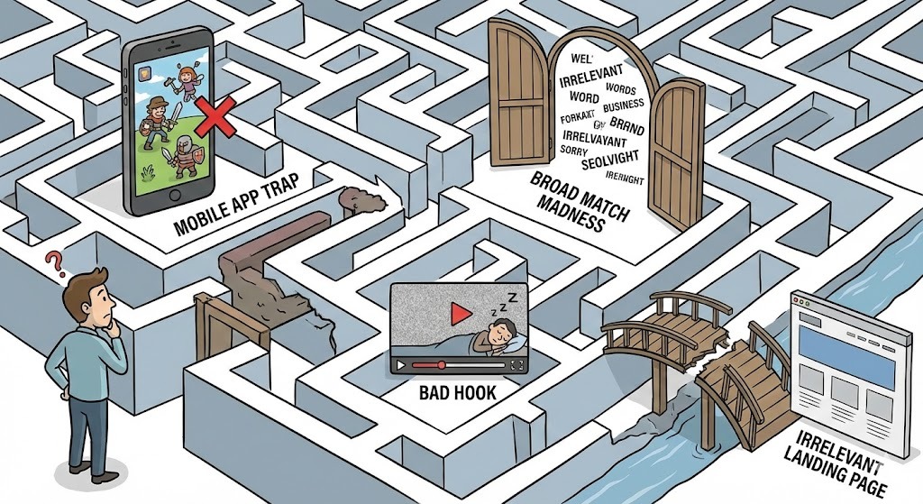 Even the most seasoned veterans can fall into traps that burn thousands of dollars before they are noticed. The difference between YouTube Ads and Google Ads means that a mistake on one platform can look very different on the other. In 2026, the most common errors are often related to over-reliance on automation without providing the necessary "human" guardrails.